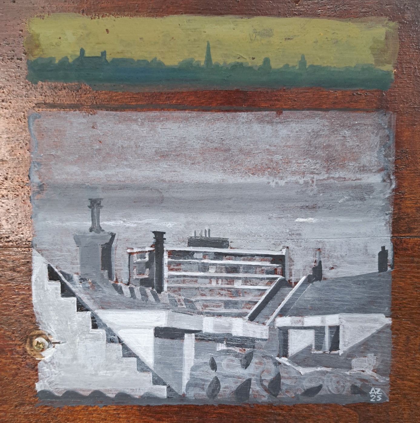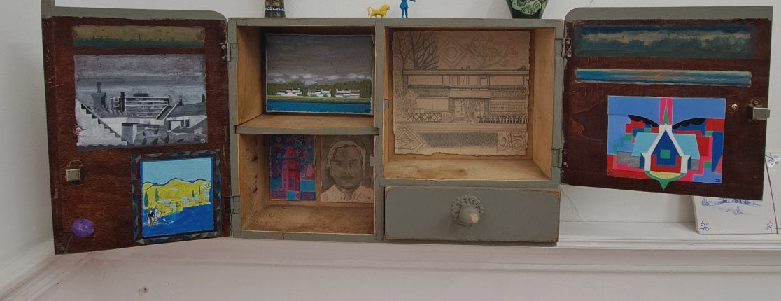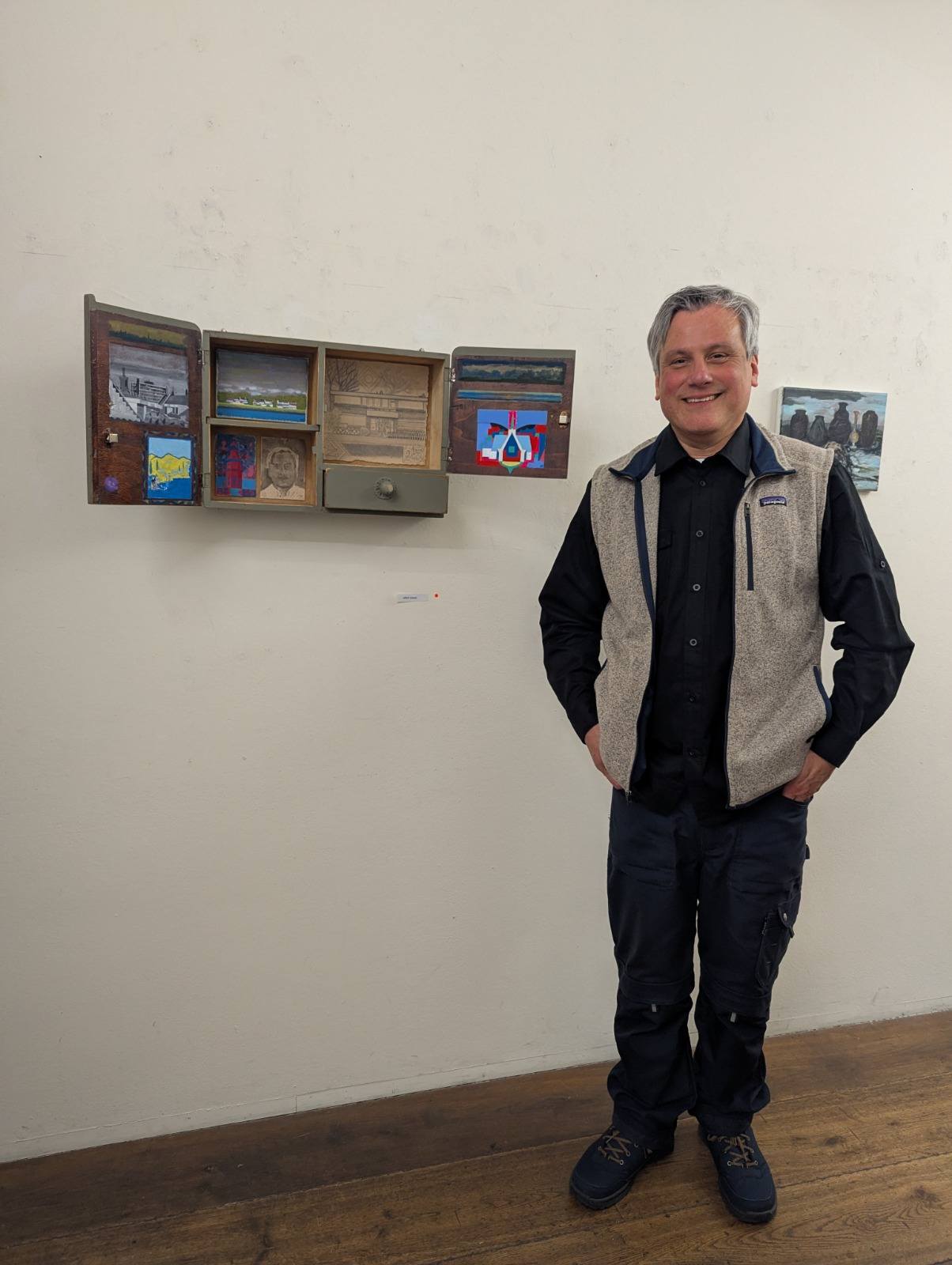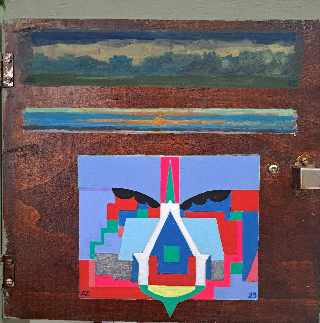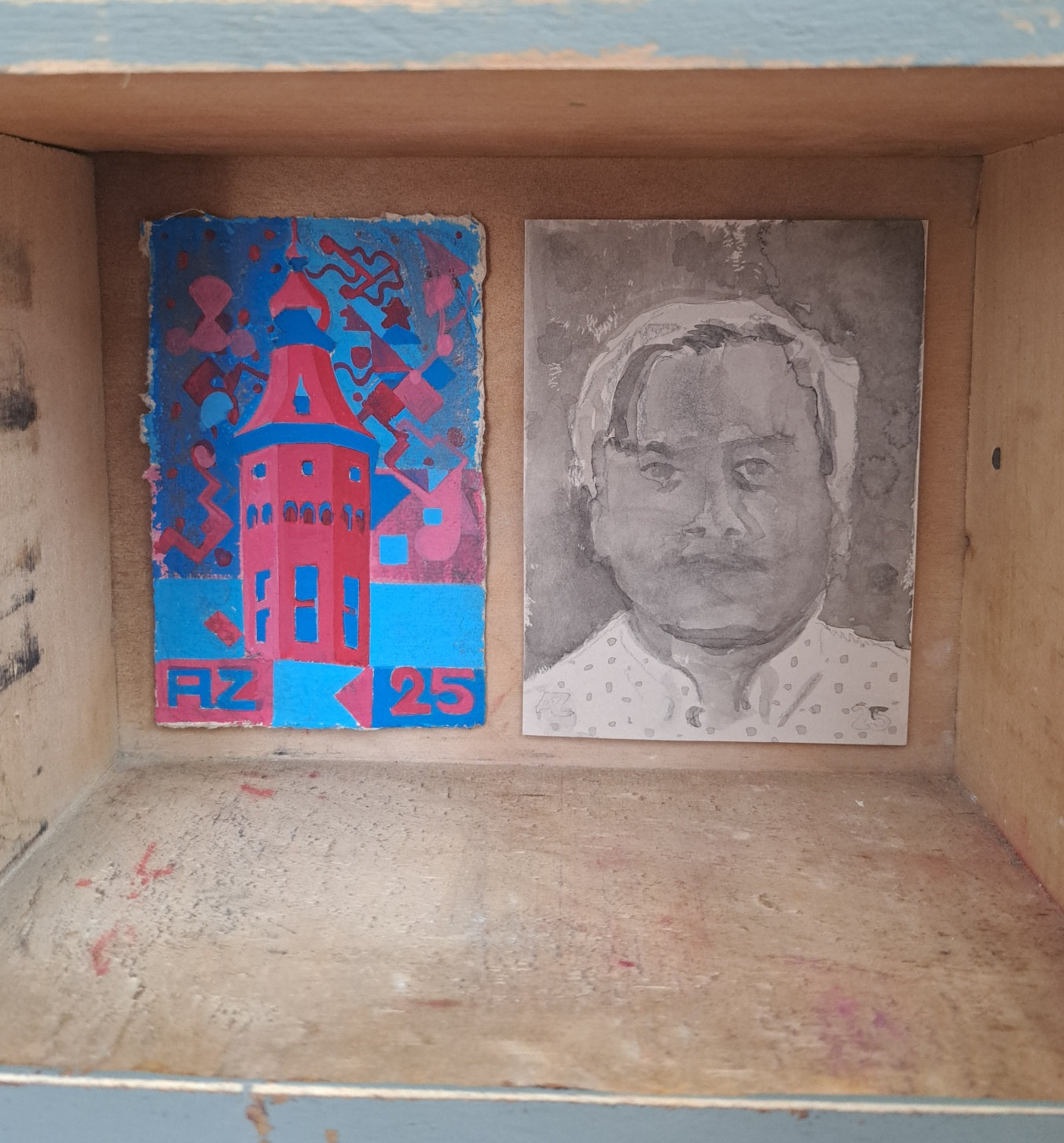 Materiaal: Flashe vinylverf ophout, potlood op papier, gewassen inkt op papier, olieverf op linnen, Flashe vinylverf op papier.
